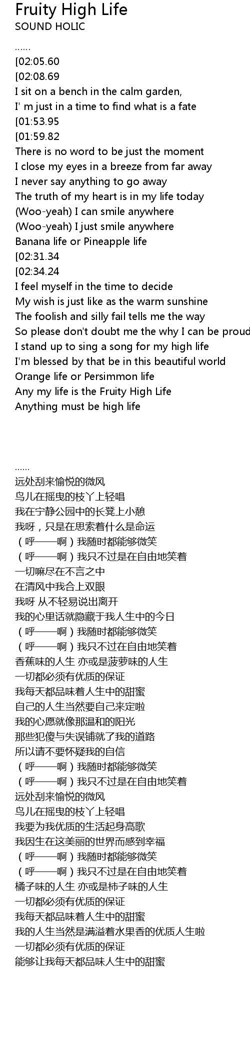 | [01:11.44][02:31.34] | Anything must be the High Life |