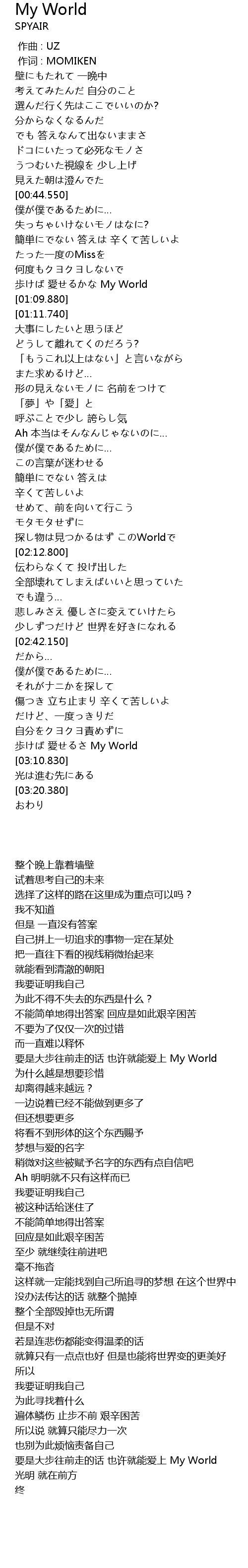 | [03:04.630] | 要是大步往前走的话 也许就能爱上 My World |