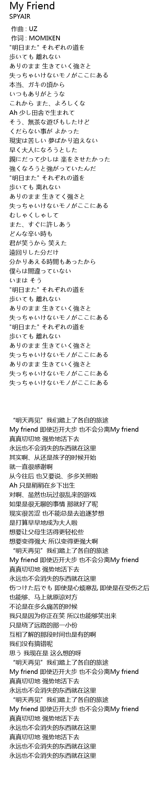 | [02:51.86] | My friend 即使迈开大步 也不会分离My friend |