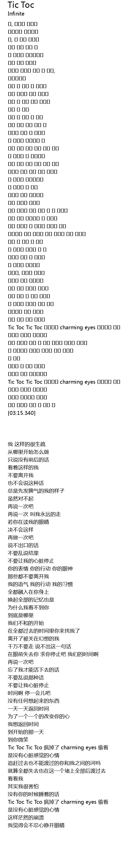 | [03:00.090] | Tic Toc Tic Tco 疯掉了 charming eyes 偷看 |