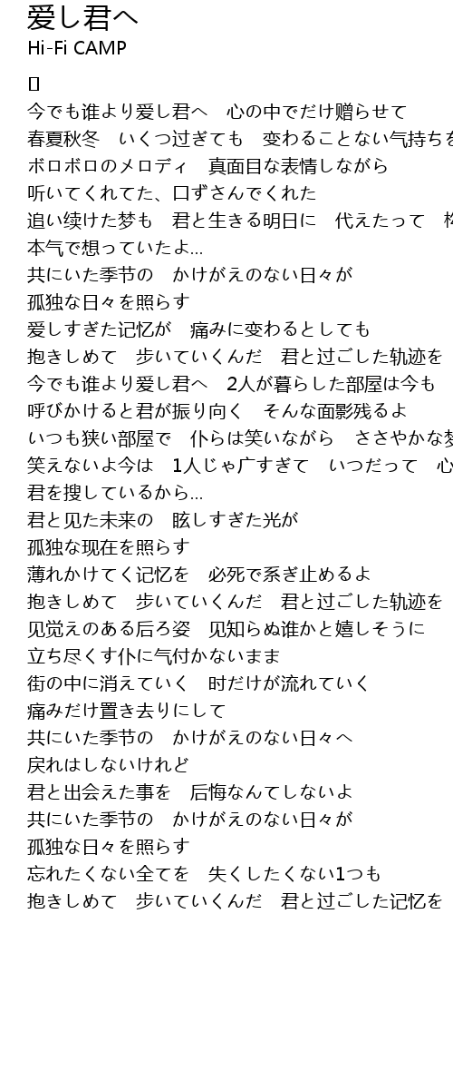 | 抱きしめて 步いていくんだ 君と过ごした记忆を |