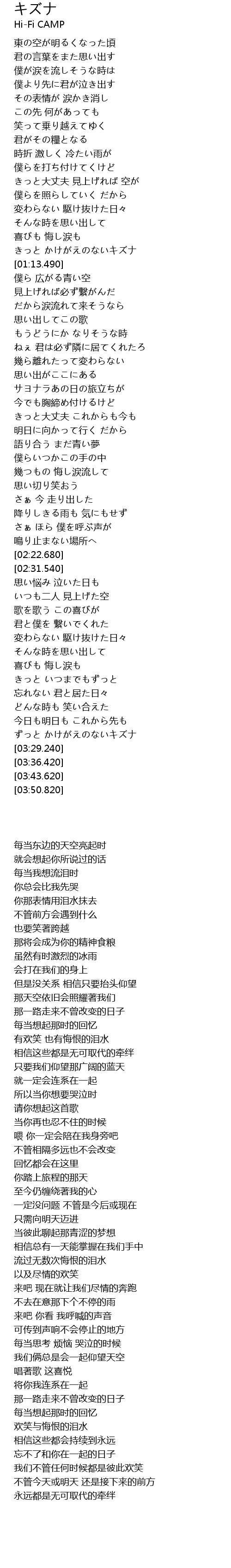 | [03:23.130] | ずっと かけがえのないキズナ |