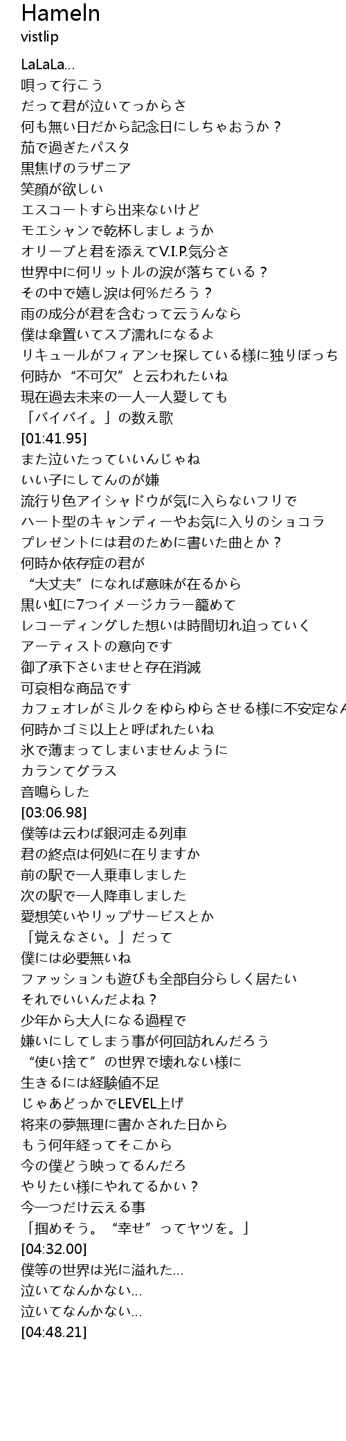 | [01:58.96] | 流行り色アイシャドウが気に入らないフリで |