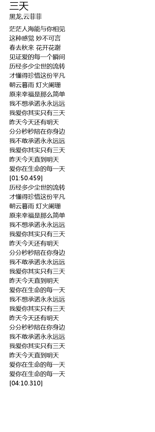 [03:51.320] zuó tiān jīn tiān zhí dào míng tiān