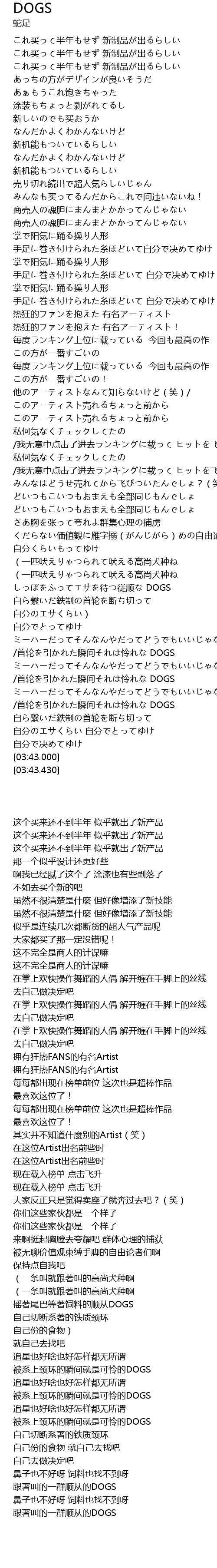 | [03:20.940] | 追星也好啥也好怎样都无所谓 被系上颈环的瞬间就是可怜的DOGS |