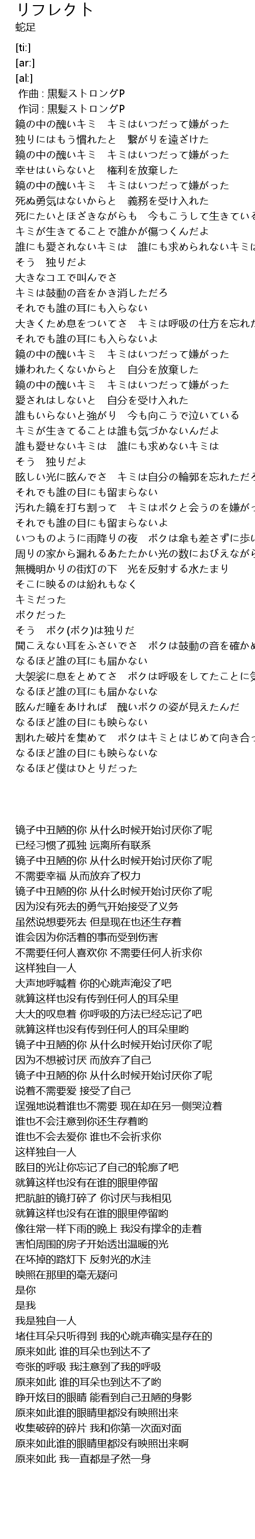 | [00:51.89] | 镜子中丑陋的你 从什么时候开始讨厌你了呢 |