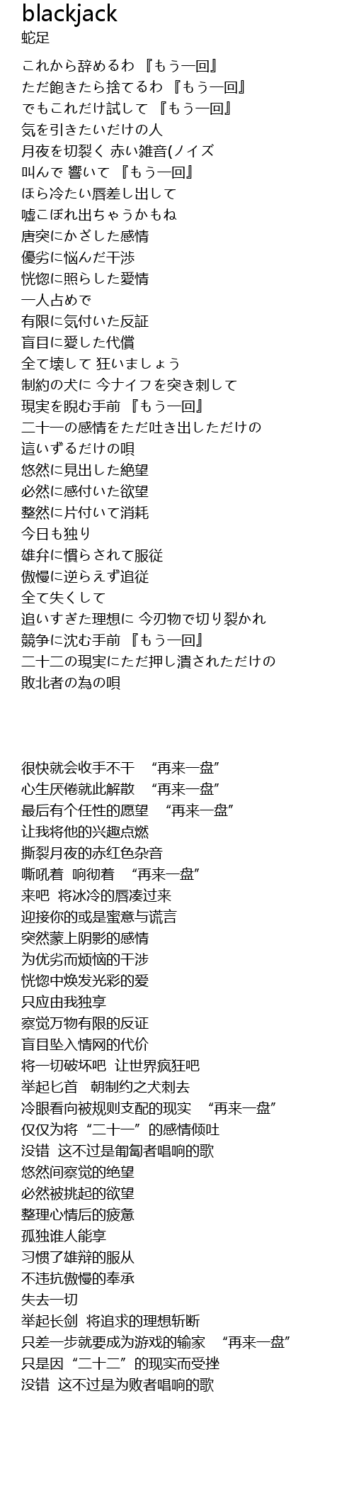 | [00:36.10] | 嘶吼着 响彻着 “再来一盘” |