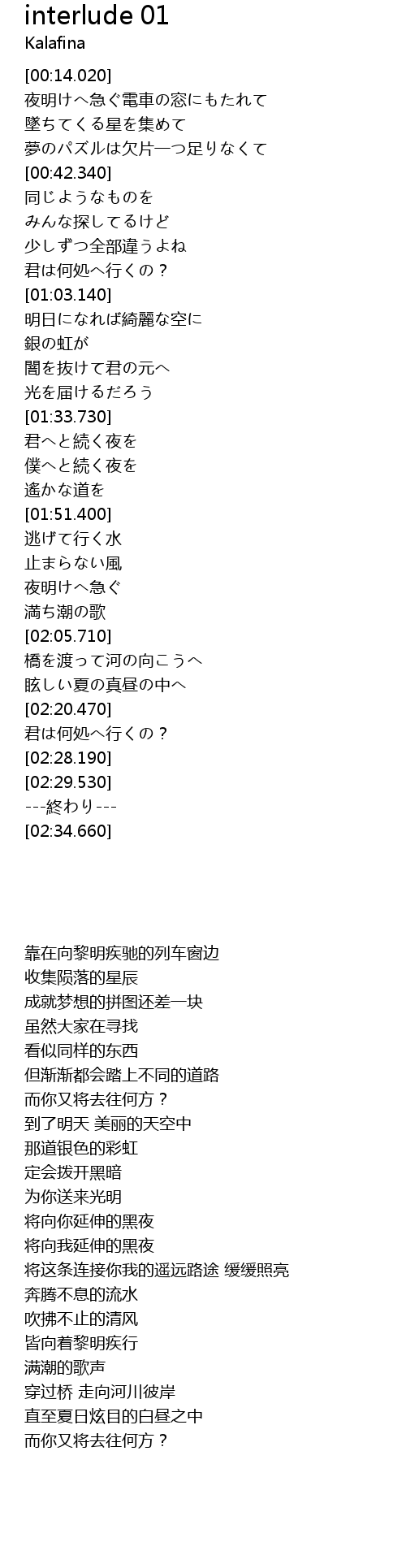 | [00:17.090] | 夜明けへ急ぐ電車の窓にもたれて |