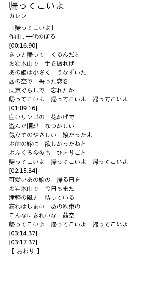 帰ってこいよ 帰ってこいよ 帰ってこいよ |