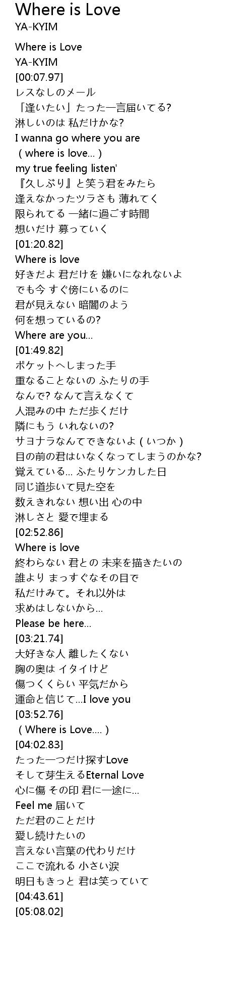 | [03:54.82] | Where is Love.... |