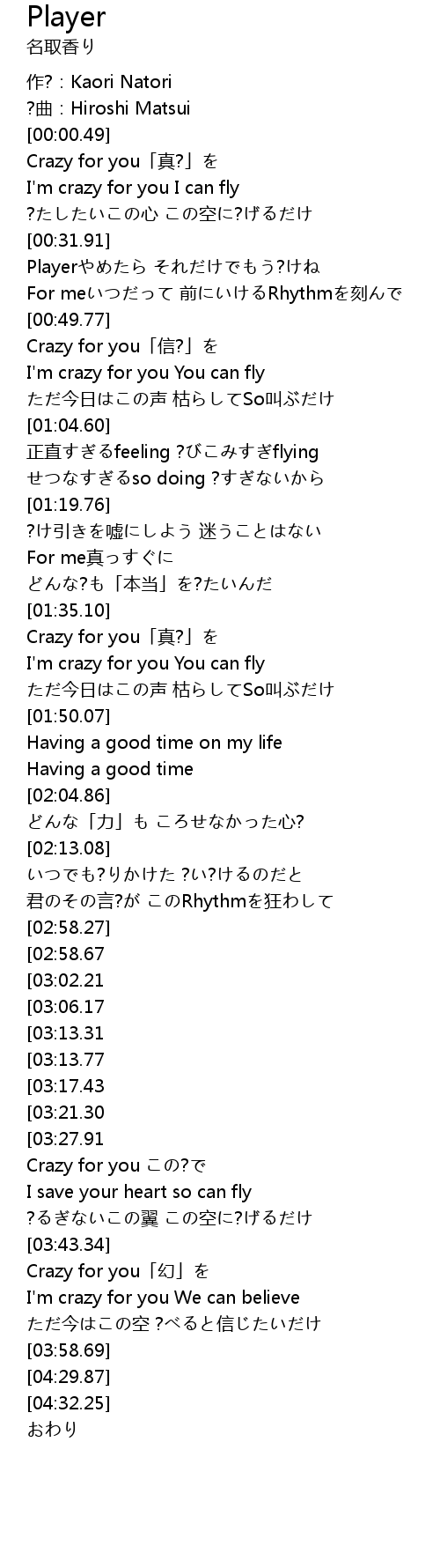 | [00:34.69] | Playerやめたら それだけでもう?けね |