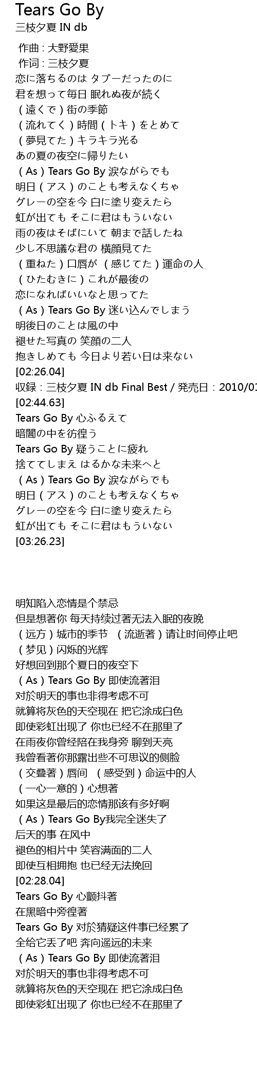 | [02:56.07] | Tears Go By yí pí |
