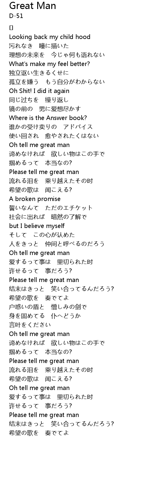 | 歌曲 | Great Man |