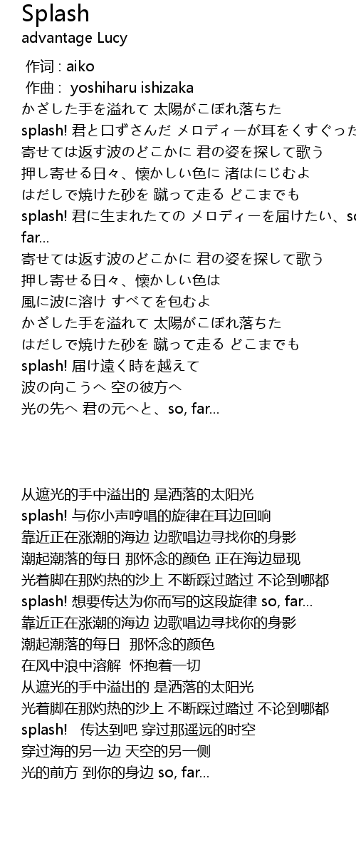 | [01:53.834] | splash! 君に生まれたての メロディーを届けたい、so, far... |