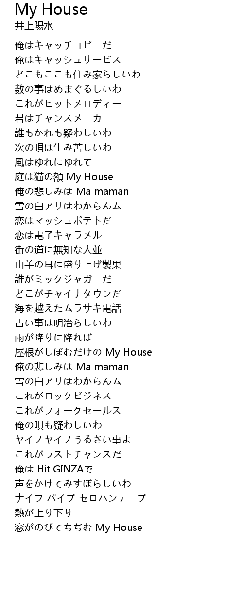 | [03:05.24] | 窓がのびてちぢむ My House |