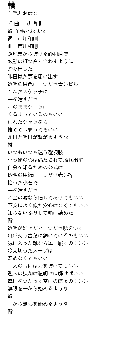 | [00:00.00] | 輪-羊毛とおはな |