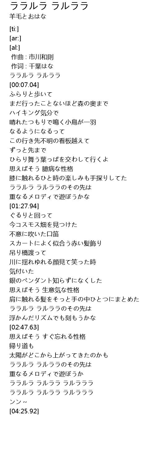 | [04:16.96] | ララルラ ラルララ ラルラララ |