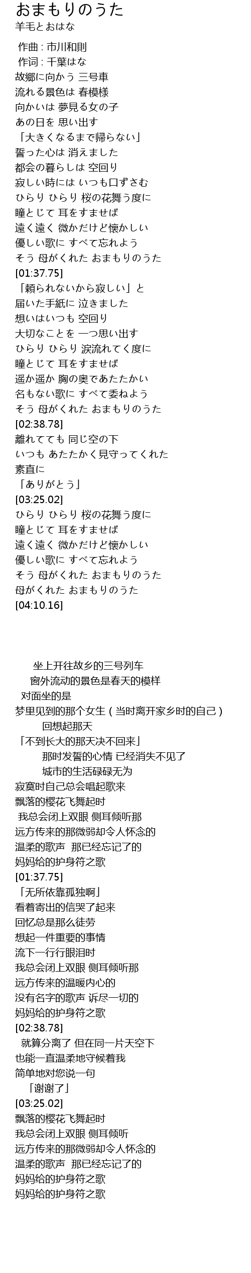| [03:59.69] | 妈妈给的护身符之歌 |