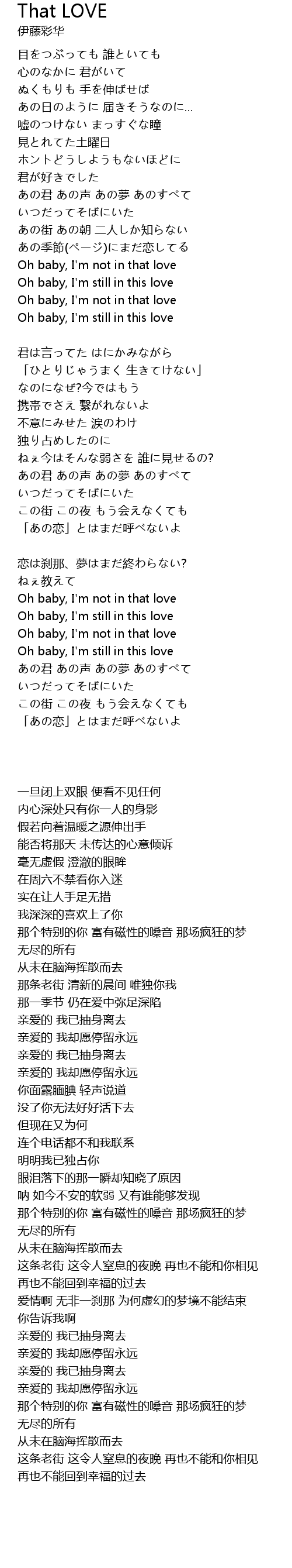 | Oh baby, I' m not in that love | |