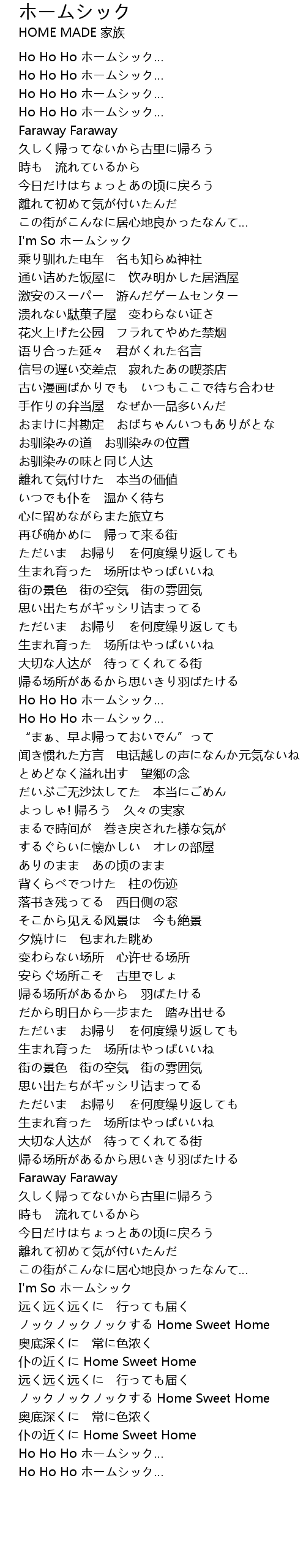 | [00:02.10] | Ho Ho Ho ホームシック… |