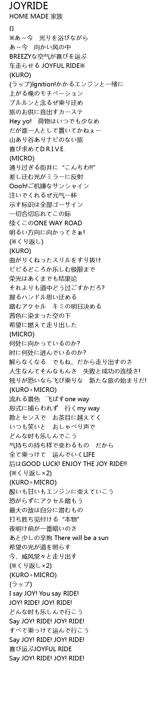 | Say JOY! RIDE! JOY! RIDE! |