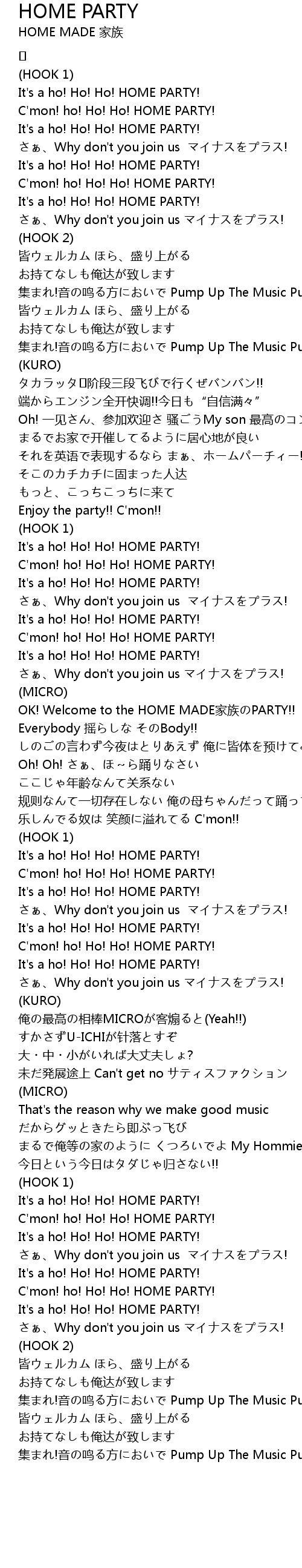 | C' mon! ho! Ho! Ho! HOME PARTY! | |