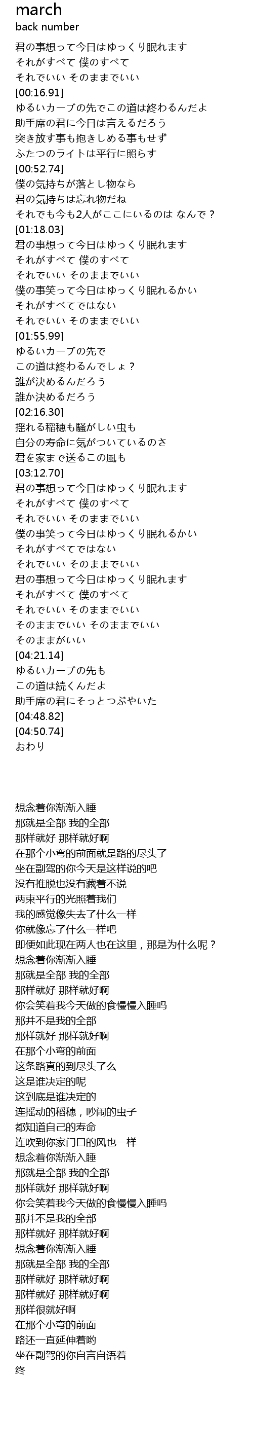 | [04:42.26] | 助手席の君にそっとつぶやいた |