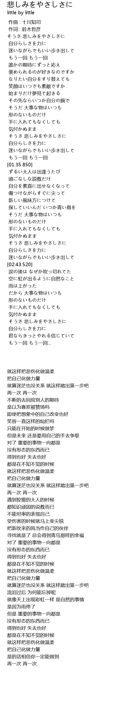 | [00:01.160] | そうさ 悲しみをやさしさに |