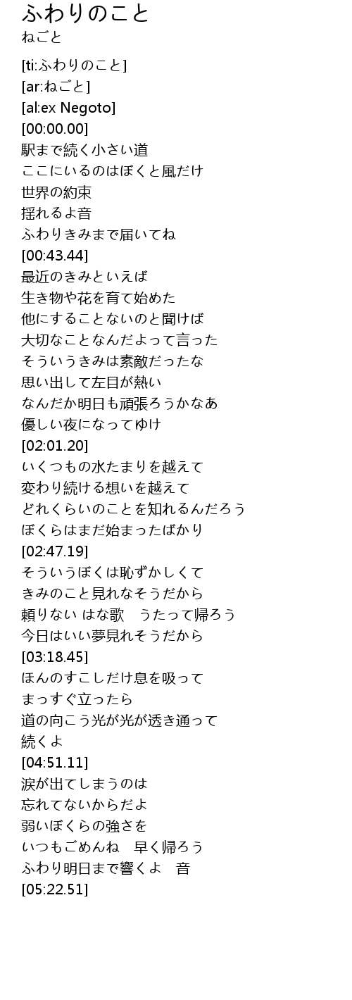 | [05:16.77] | ふわり明日まで響くよ 音 |