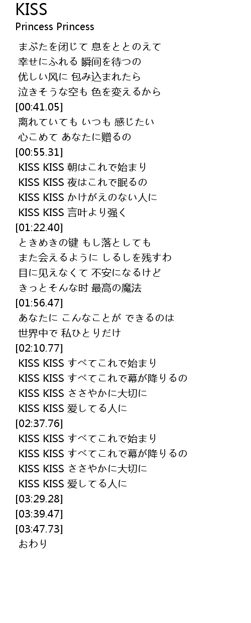 | [02:18.48] | KISS KISS すべてこれで幕が降りるの |