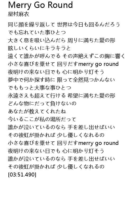 | [03:15.220] | 小さな喜びを乗せて 回りだすmerry go round |