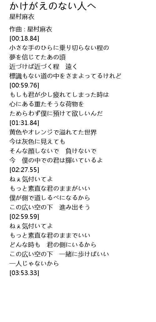 | [03:21.83] | もっと素直な君のままでいい |