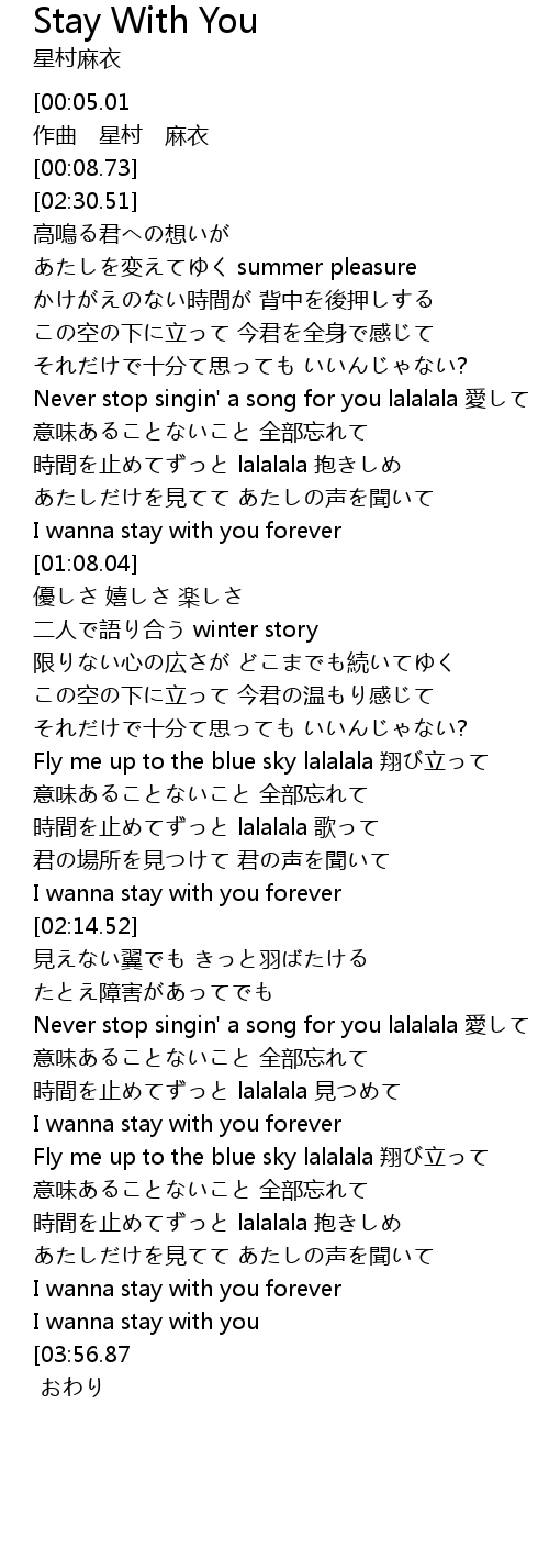 | [02:18.12][00:05.01] | Stay With You |