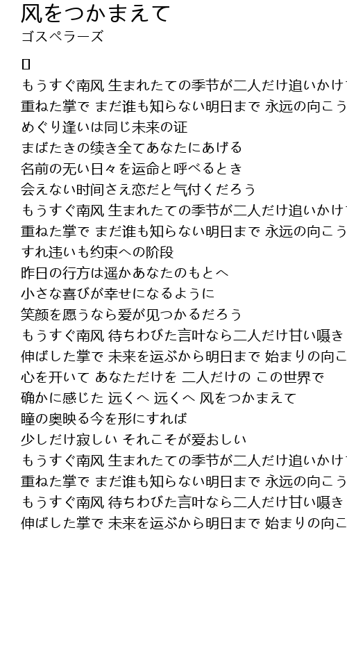 | 确かに感じた 远くへ 远くへ 风をつかまえて | |