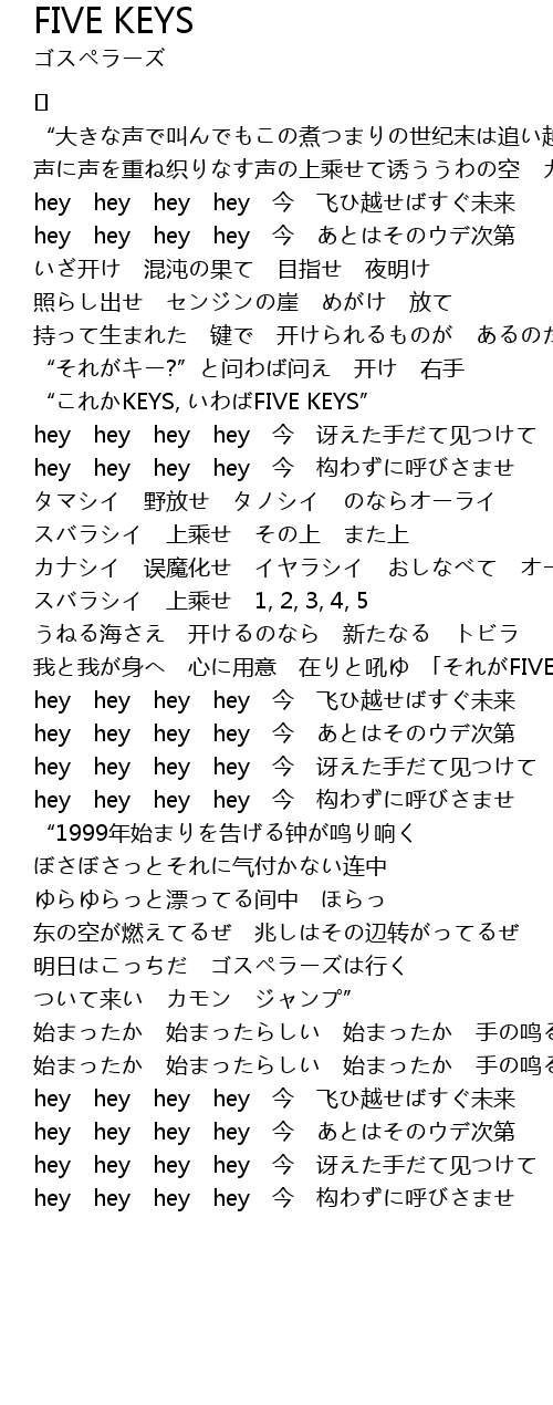 | “これかKEYS, いわばFIVE KEYS” | |