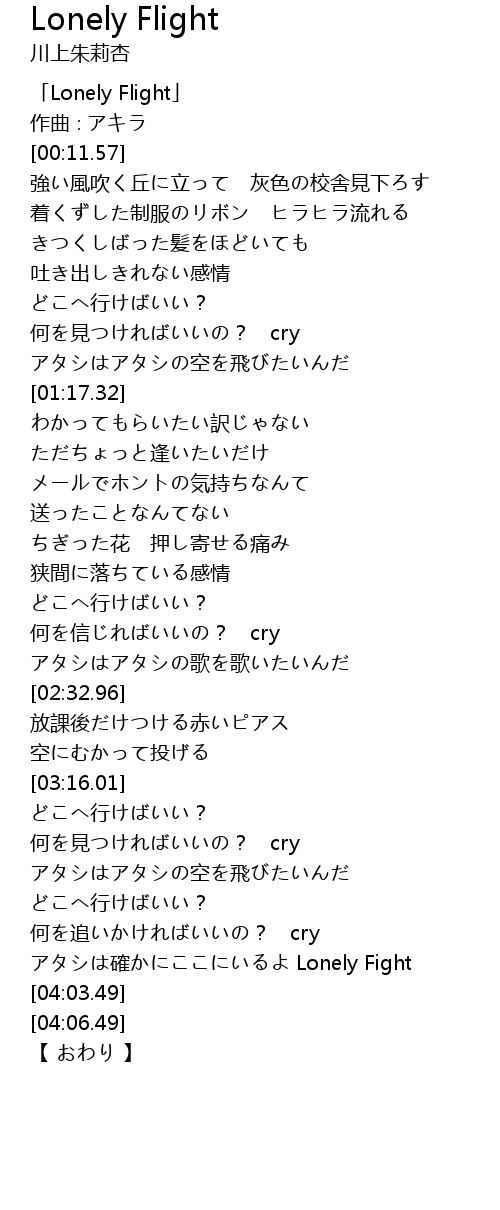 | [03:52.58] | アタシは確かにここにいるよ Lonely Fight |