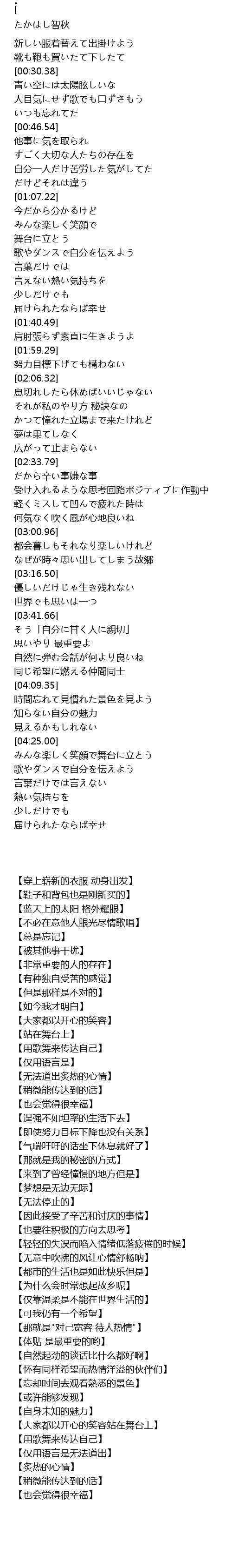 | [04:37.86] | みんな楽しく笑顔で舞台に立とう |