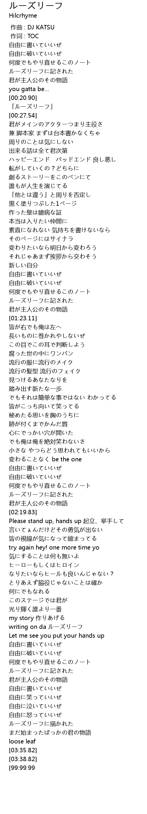 | [00:22.54] | 「ルーズリーフ」 |