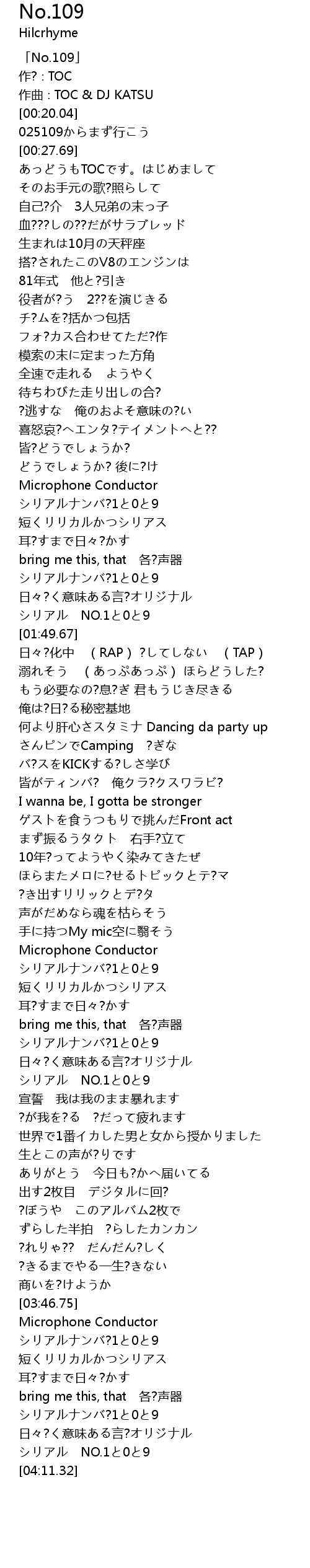 | [04:03.08] | シリアルナンバ?1と0と9 |