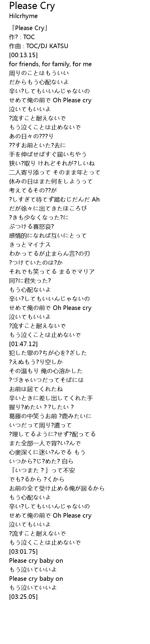 | [00:01.15] | 「Please Cry」 |