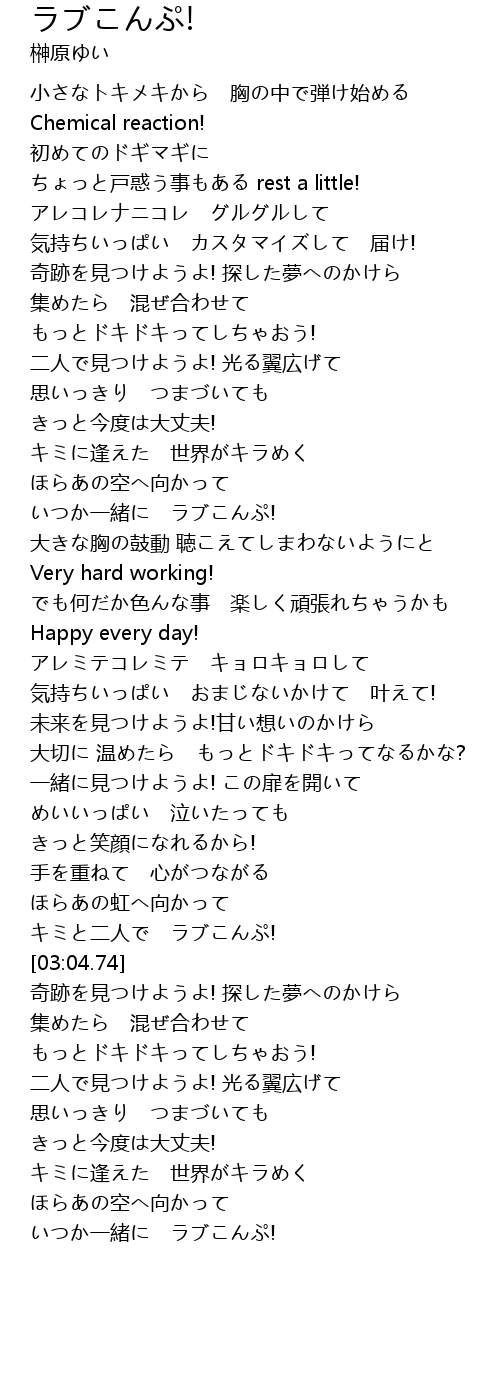 | [03:37.63] | いつか一緒に ラブこんぷ! |