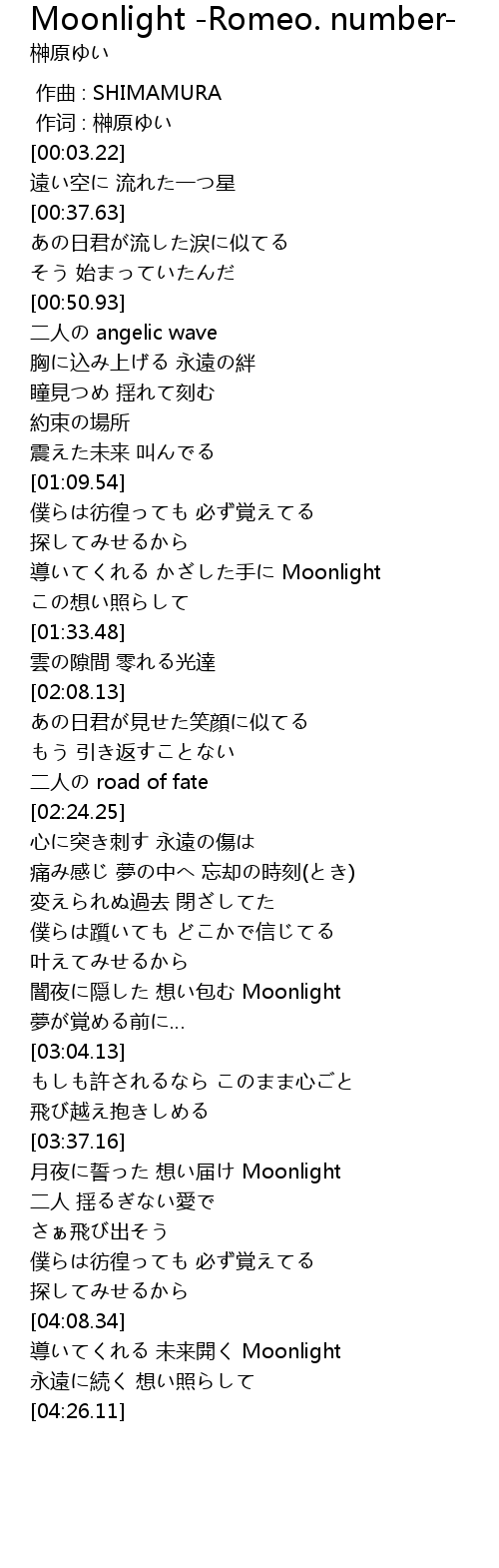 | [03:37.78] | 月夜に誓った 想い届け Moonlight |