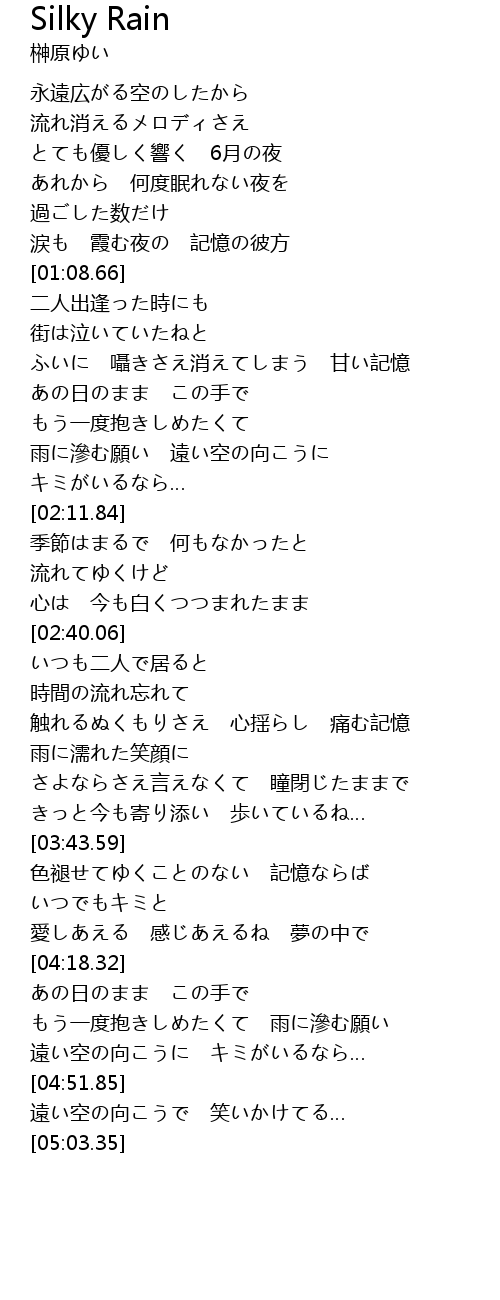 | [04:26.67] | もう一度抱きしめたくて 雨に滲む願い |