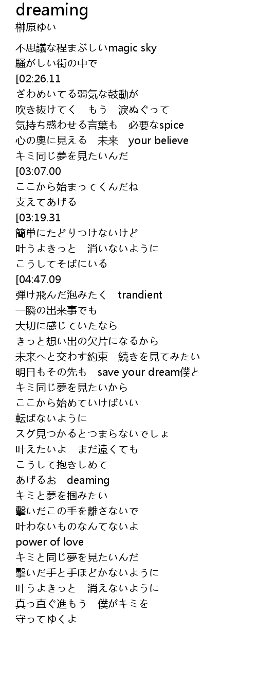| [03:02.56] | キミ同じ夢を見たいから |
