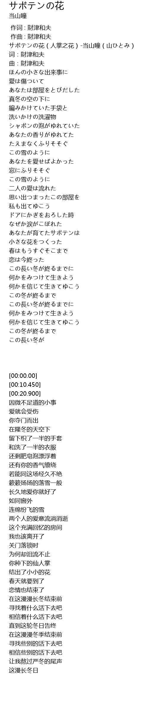 | [00:00.00] | サボテンの花(人掌之花)-当山瞳(山ひとみ) |