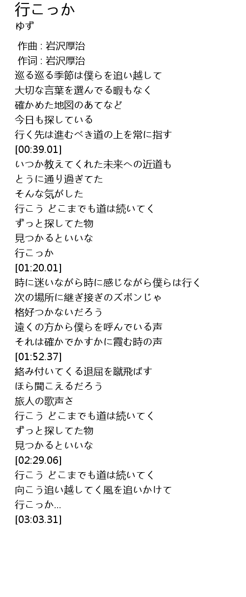 | [00:01.00] | 作词 : 岩沢厚治 |