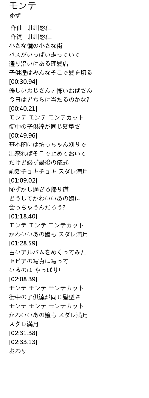 | [00:40.96] | モンテ モンテ モンテカット |