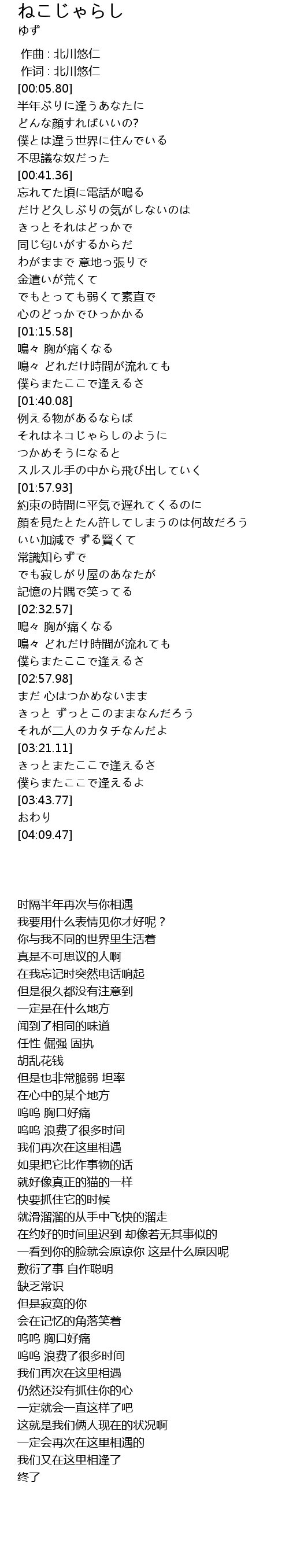 | [01:18.95] | 鳴々 胸が痛くなる |