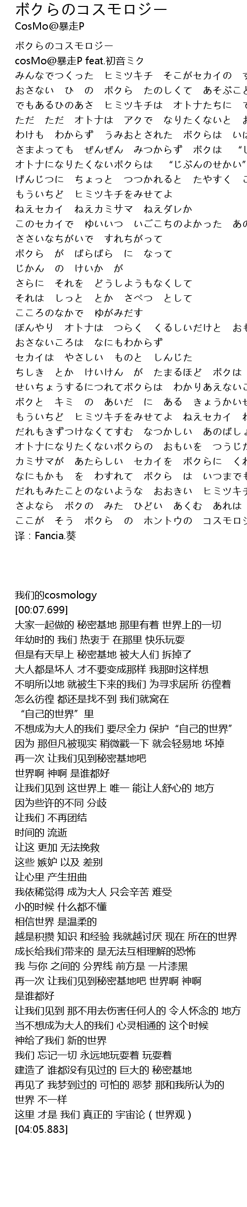 | [00:07.699] | cosMo@暴走P feat.初音ミク |