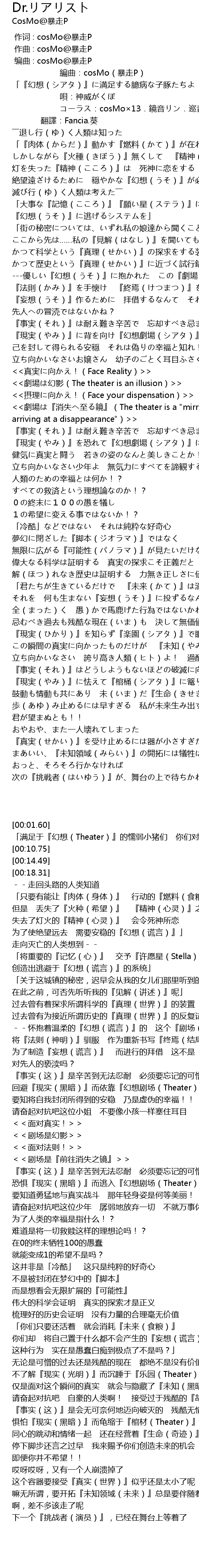 | 歌曲 | Dr.リアリスト |